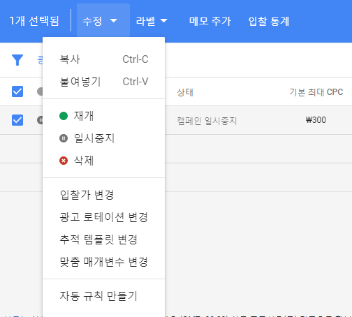GDN 캠페인 입찰가 조정하기 2) 여러 그룹 수정 시