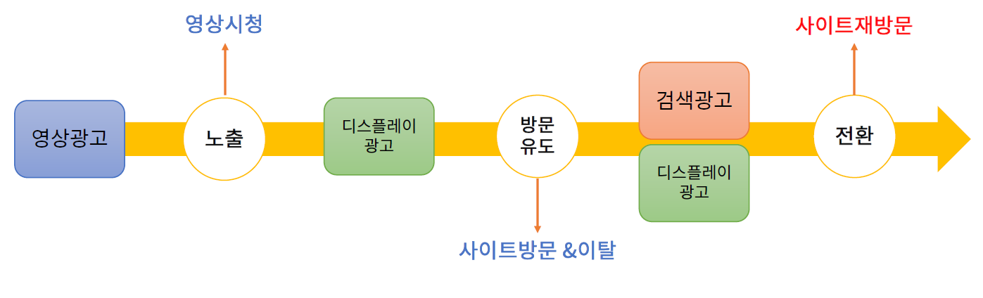 마케팅 캠페인 전반을 놓고 봤을 때 디스플레이 광고는 노출 및 방문 유도를 위한 광고 영상 캠페인을 진행한다면 , 영상을 통해 1차적이 노출이 될 수 있지만, 대부분의 경우 1차적인 노출부터 전황을 위한 리마케팅까지 디스플레이 캠페인의 역할이 큼