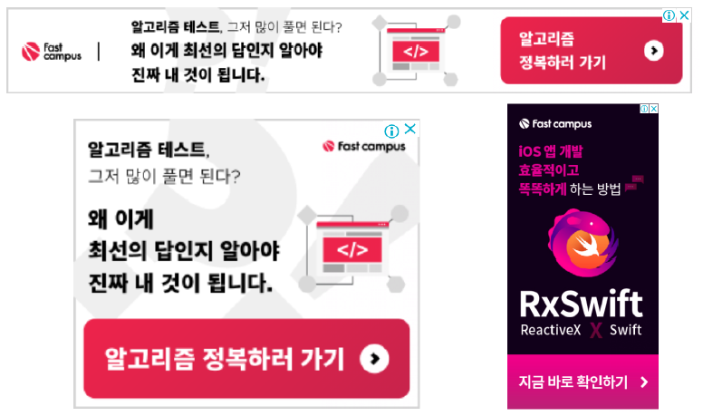 광고 소재는 다양한 사이즈와 형식의 광고를 운영하면서 최적화.