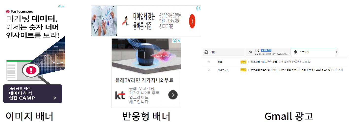 온라인 상의 광고지면을 통해 노출되는 배너 형태의 광고 유형, 실시간 입찰 방식과 사전예약방식 등이 존재