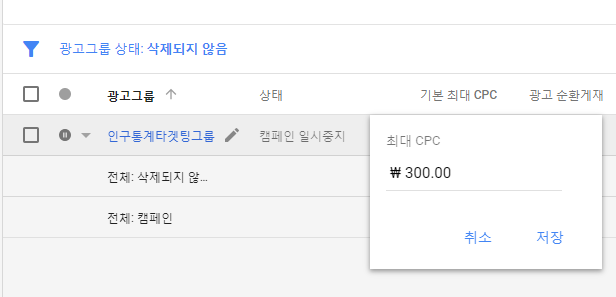 GDN 캠페인 입찰가 조정하기 1) 단일 그룹 수정 시