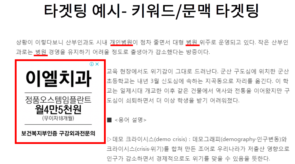 키워드 타기팅은 관련 키워 등 와 문맥 타기팅.