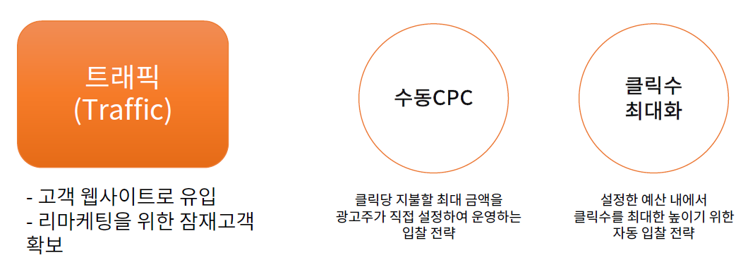 웹사이트로의 방문을 늘리는 것이 목표라면 클릭 기반의 입찰전략을 선택.