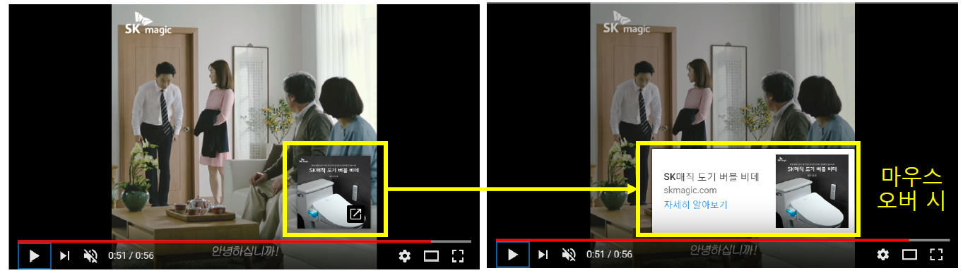 처음에는 길게 나왔다가 광고 15초 이후에 축소되어 작은 형태로 노출.