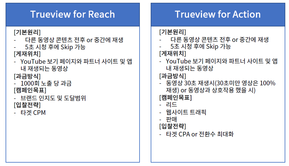 전환 목표 광고 운영 가능. 기존 트루뷰에는 없었던 컴패니언 배너 CTA버톤과 엔드 스크린 자동 생성
