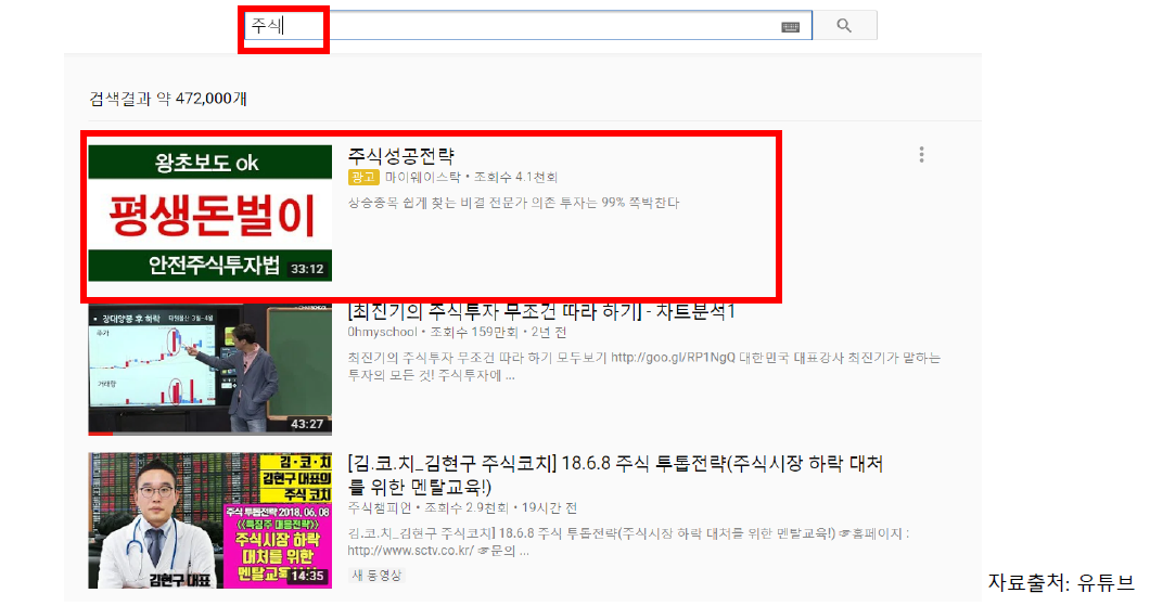 유튜브 영상 검색 결과 및 추천 동영상 영역에 노출되는 클릭형 동영상 광고 상품으로 최근 몇 년 사이 영상 검색을 통해 정보를 습득하는 사용자의 급증으로 각광받는 제품. YouTube ver. 검색광고.