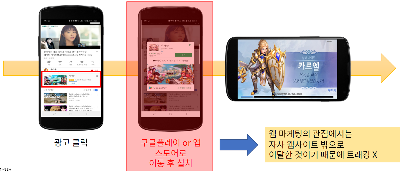 웹에서는 이탈로 간주되는 구글 플레이 스토어 방문이 앱에서는 필수 관문.