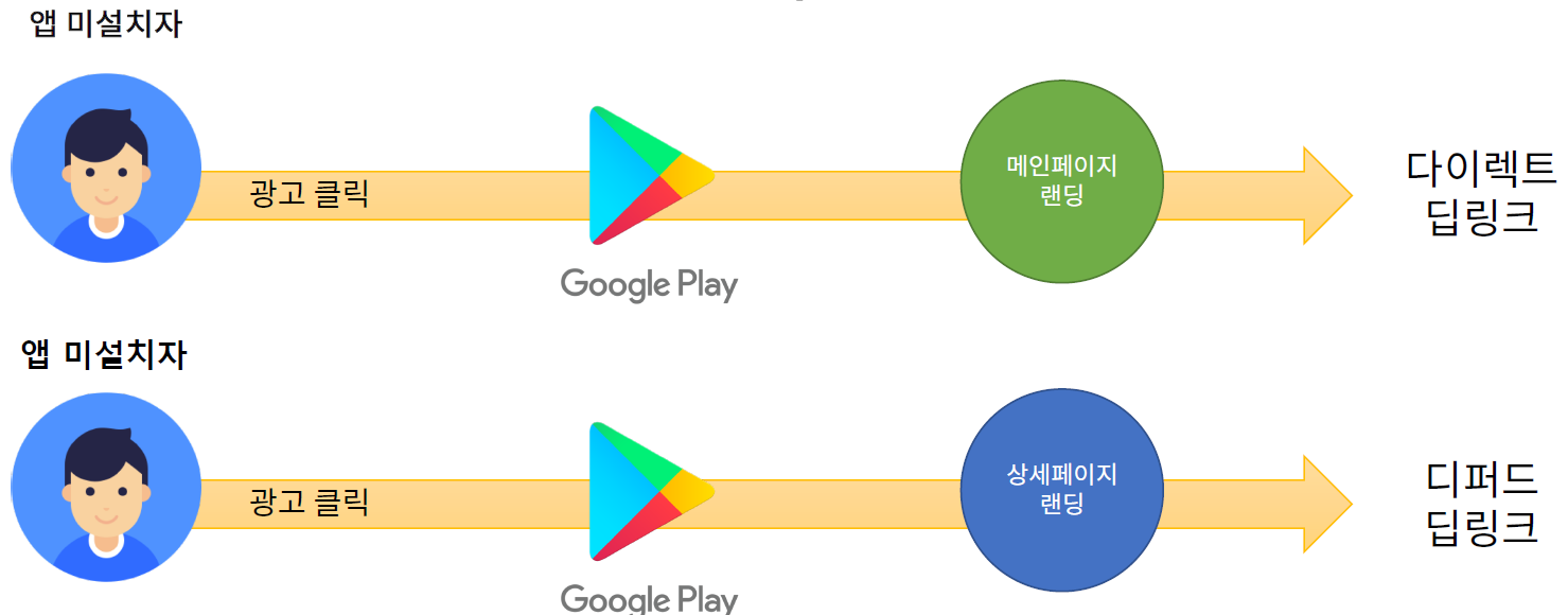 구글 플레이 스토어 방문 후 앱 실행까지를 추천하기 위한 것이 딥링크.