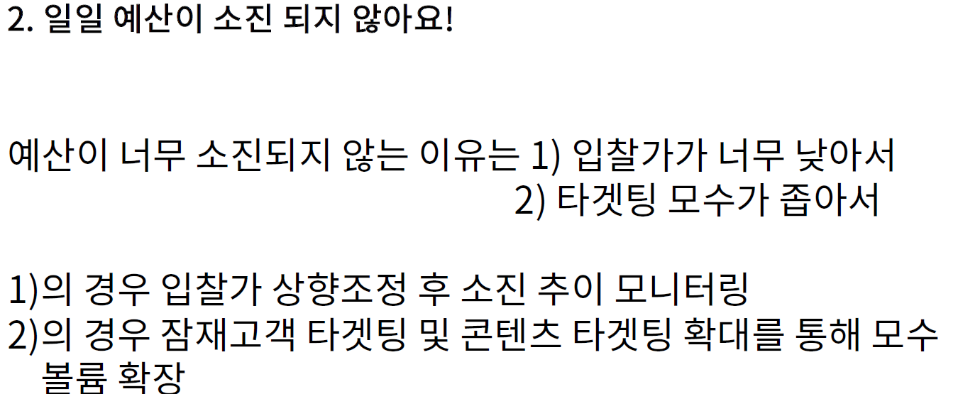4. 예산 : 머신러닝 기반의 캠페인의 경우 효과적인 머신러닝을 위해 Target CPA 대비 최소 10배 - 20배의 일 예산을 갖출 것