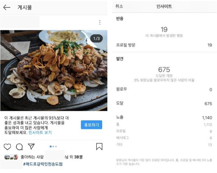 도달: 광고가 노출된 사람의 수 (중복 불가)
