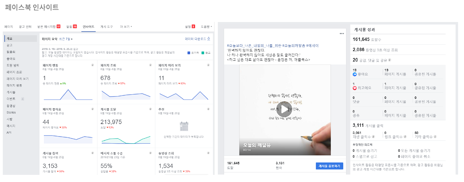 각 매체 별 인사이트 화면