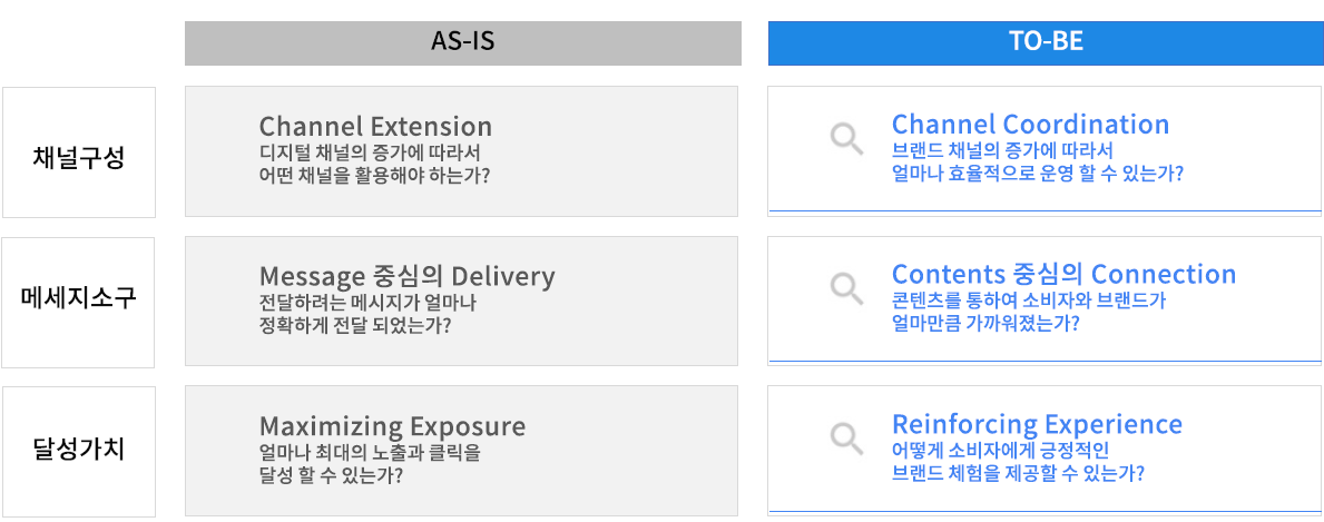 하나의 목적을 각 채널 별 역할에 맞춰 나누어 진행했었던 기존과 다르게