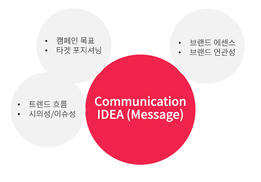 합리적인 편익 - 비합리적인 편익 -> 메시지화 하는 과정 (슬로건, 커뮤니케이션 아이디어, 캠페인 해시태그 등)